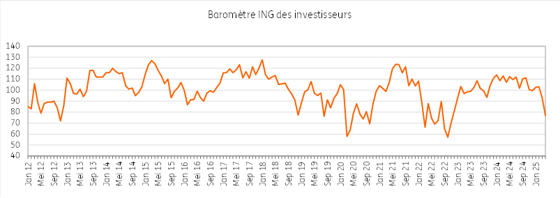 Le Baromètre ING des 'investisseurs mesure chaque mois la confiance des investisseurs particuliers belges. Cela exprime le "sentiment des investisseurs". Cette enquête est réalisée par Kantar. L'enquête sera réalisée en ligne.