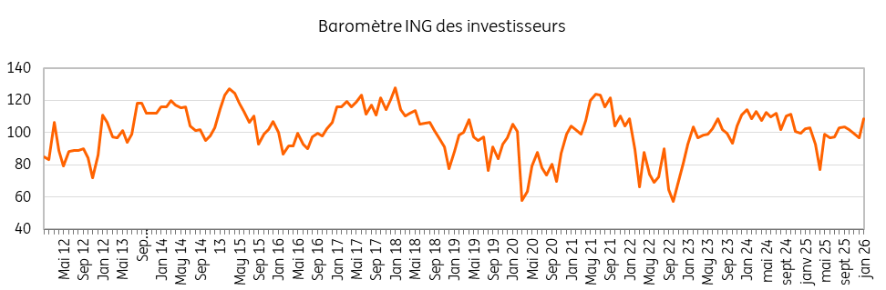 Le Baromètre de l'investisseur mesure chaque mois la confiance des investisseurs particuliers belges. Cela exprime le "sentiment des investisseurs". Cette enquête est réalisée par Kantar et est une initiative d'ING. L'enquête a été réalisée en ligne durant le mois de janvier 2026.