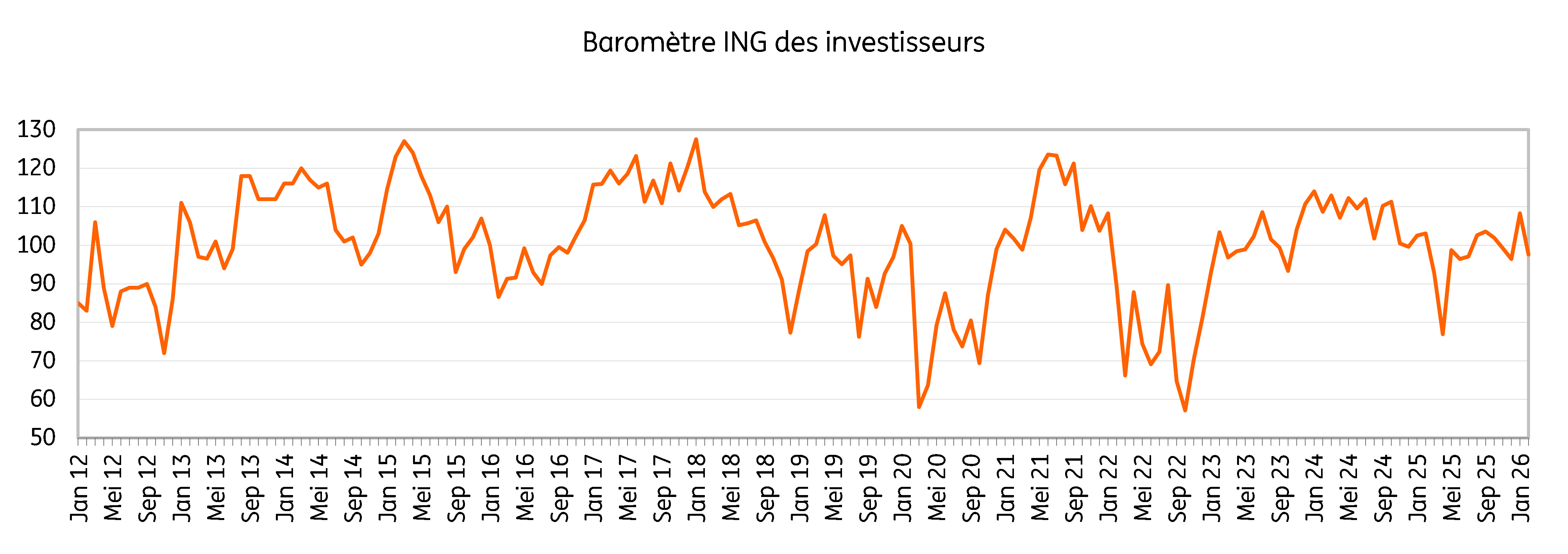 Le Baromètre de l'investisseur mesure chaque mois la confiance des investisseurs particuliers belges. Cela exprime le "sentiment des investisseurs". Cette enquête a été réalisée en ligne par Kantar et est une initiative d'ING.