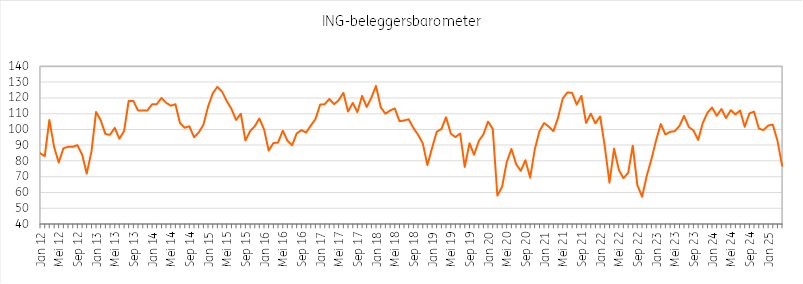 De ING-beleggersbarometer meet elke maand het vertrouwen van Belgische particuliere beleggers. Deze drukt het ‘beleggerssentiment’ uit. Dit onderzoek wordt uitgevoerd door Kantar. De enquête wordt online afgenomen.
