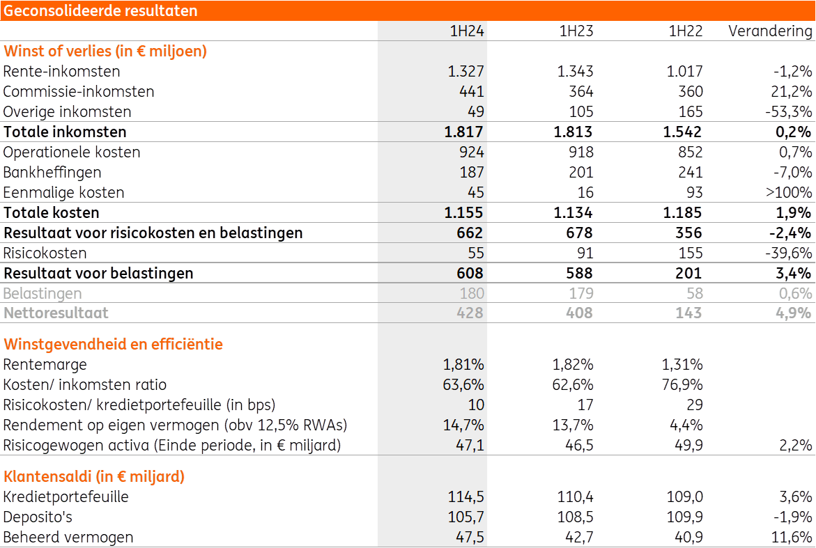 De groei van meer dan €4 miljard in uitstaande kredieten, met name aan ondernemingen, onderstreept onze groeiambitie. Dankzij ons aantrekkelijk spaar- en beleggingsaanbod ontdekken ook steeds meer klanten onze bank als de referentiebank in dit domein. Ik ben blij dat dit goede commercieel momentum zich ook vertaalt in sterk financiële cijfers met een sterk commissieresultaat als uitschieter. In deze eerste jaarhelft doen we beter dan de eerste helft van ons recordjaar 2023 Hans De Munck, CFO van ING België