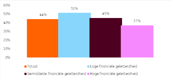- Dat aandeel zakt onder 50% bij personen met een lage of gemiddelde financiële kennis.