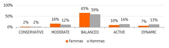 17% des femmes investisseuses ont un profil de risque dynamique ou actif contre 27% d’hommes