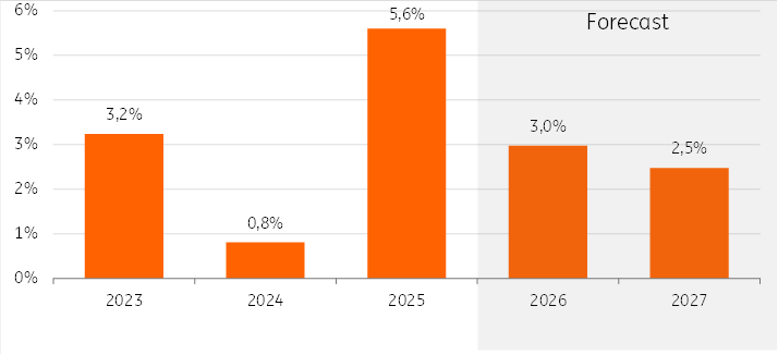 - Après une année 2025 forte, nous prévoyons un marché immobilier moins dynamique en 2026 et 2027, avec des hausses de prix plus modérées (3,0 % et 2,5 %) en raison d'une légère hausse des taux d'intérêt à long terme, d'une croissance économique plus lente et d'une croissance du pouvoir d'achat plus faible.