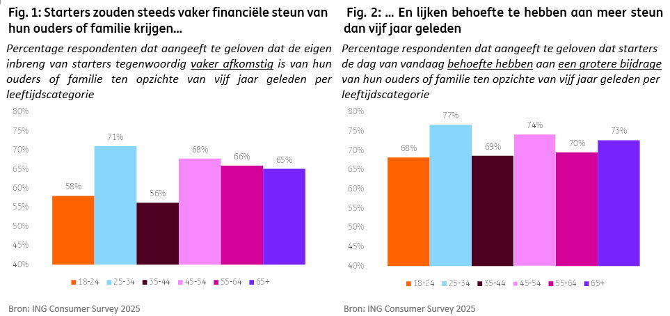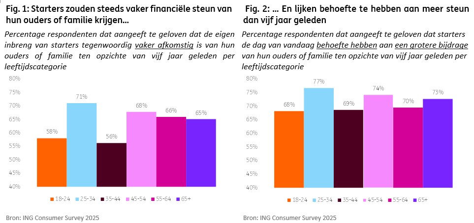 Hoewel de hypotheekrente sinds 2024 wat is afgekoeld, blijft ze hoger dan vóór 2022, en door de aanhoudende inflatie verwachten we geen terugkeer naar de enorm lage rentevoeten die we gekend hebben. Dit heeft een impact gehad op de betaalbaarheid van woningen, zoals onze ING Consumer Survey eind vorig jaar al aantoonde, waaruit bleek dat de meerderheid van de Belgen vreest dat jongeren niet meer in staat zullen zijn om een woning aan te kopen. Daarom gingen we in onze meest recente enquête dieper in op hoe de Belg vandaag kijkt naar de huidige situatie en toekomst van jonge en eerste kopers op de woningmarkt.
